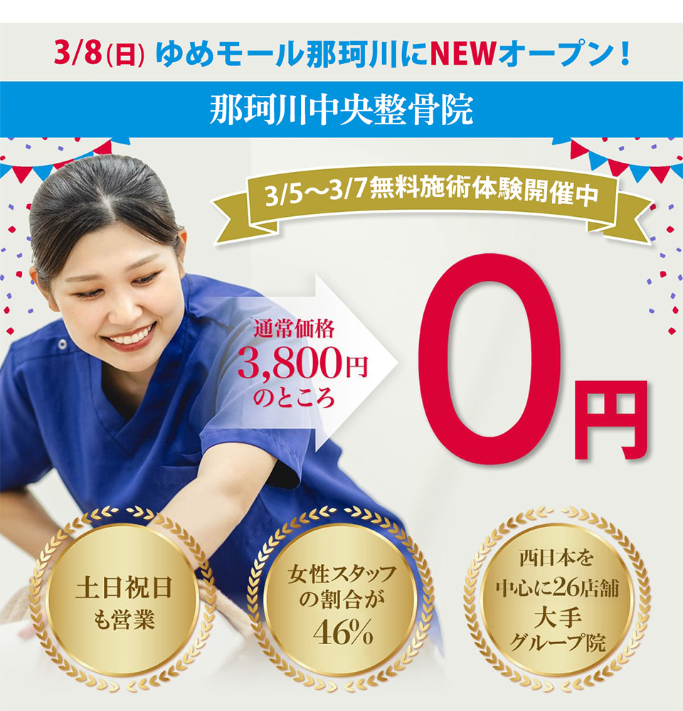 那珂川中央整骨院 ゆめモール那珂川店でございます。